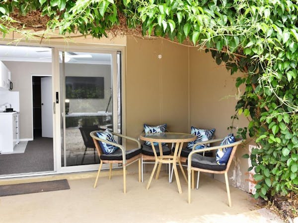 Located on the car park level, this two bedroom motel room features a queen bed and 2 single beds. Featuring lounge /dining, kitchenette, private patio with setting.