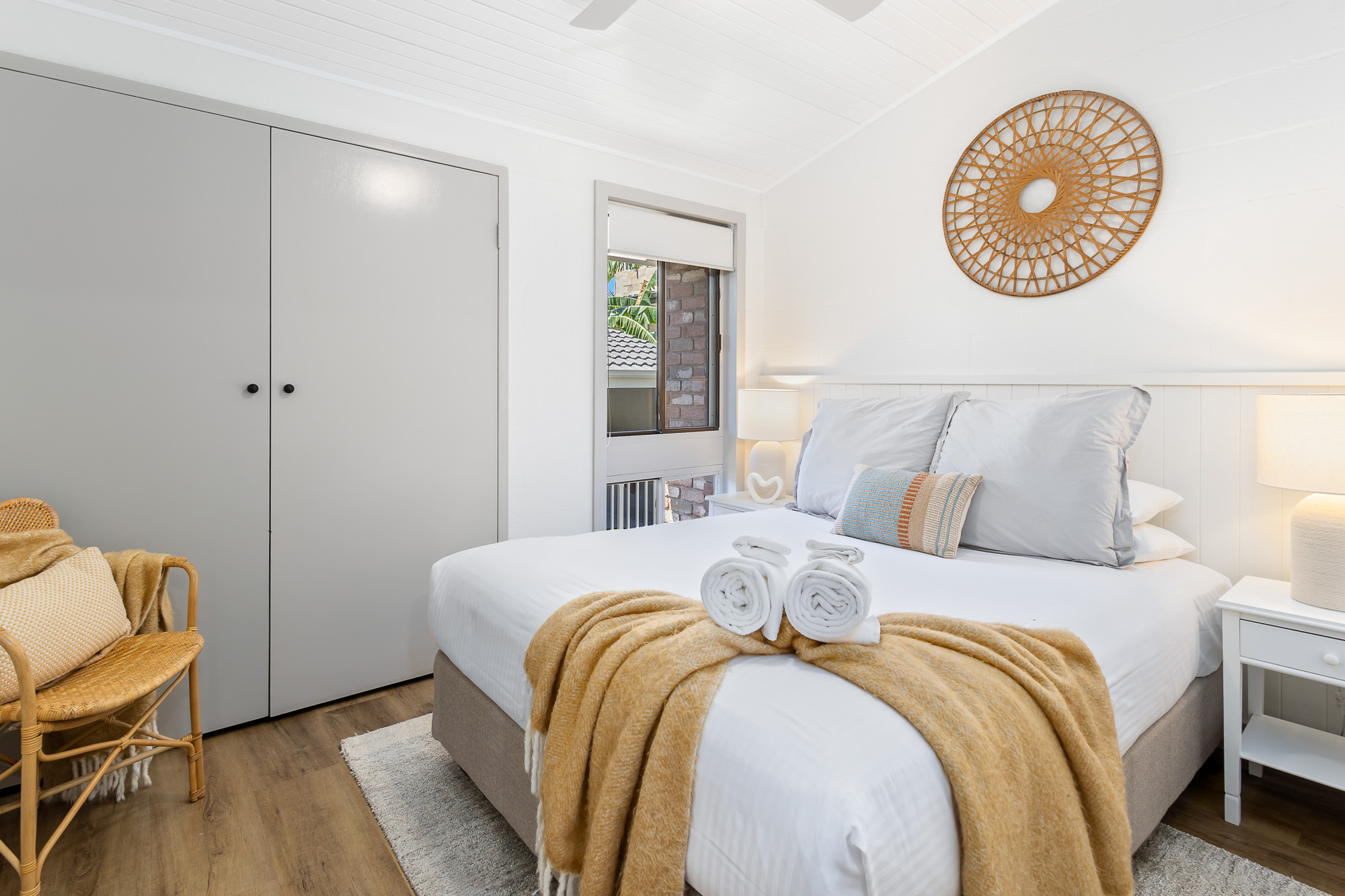 - King size bed in master, queen size in second room